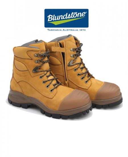 Blundstone Men’s Work Safety Boots – Wheat Nubuck Leather Steel Toe Cap with Zip (992)